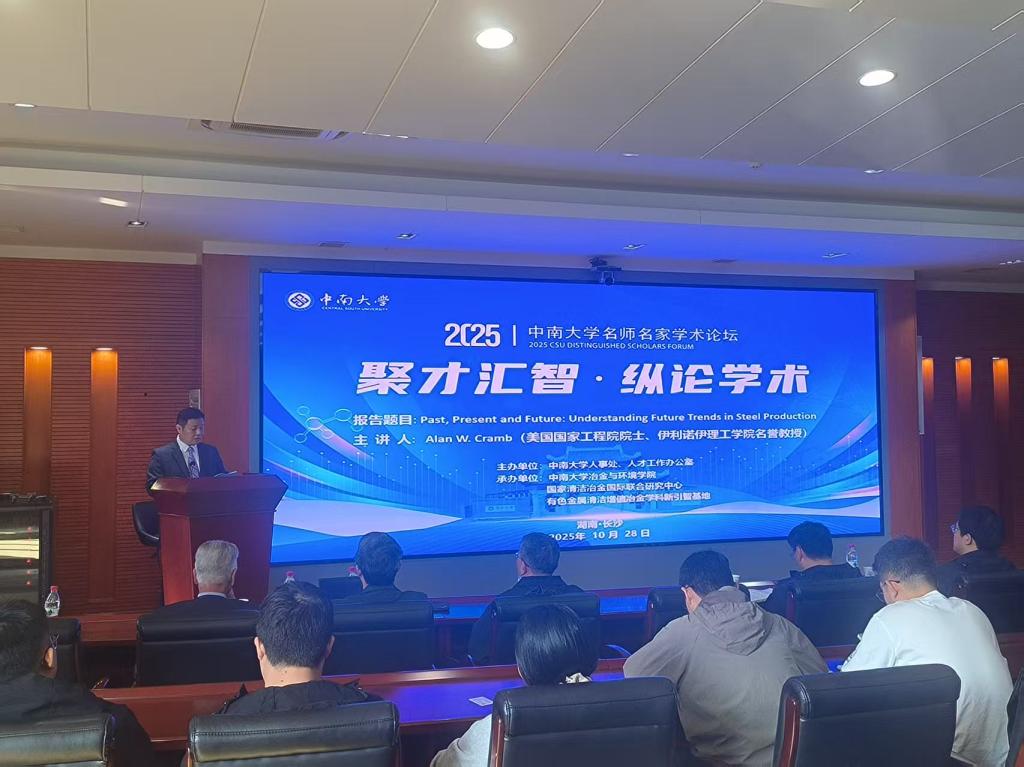 聚才汇智,纵论学术。2025年10月28日,中南大学名师名家学术论坛迎来重磅嘉宾——美国国家工程院院士、伊利诺伊理工学院原校长Alan W. Cramb教授,他以《Past, Present and Future: Understanding Future Trends in Steel Production》为题,为中南师生带来一场关于钢铁生产起源以及未来趋势的学术盛宴。